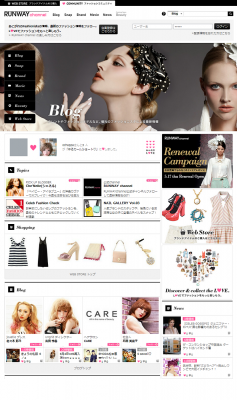 「RUNWAY chaannel」は、ファッションに関する情報発信、およびユーザーコミュニケーションの場を提供する“コミュニティー機能”、WEBSTOREとして“ECサイト機能”、の2つの機能を有しており、ファッション感度の高い顧客層に支持されているファッションポータルサイトです。