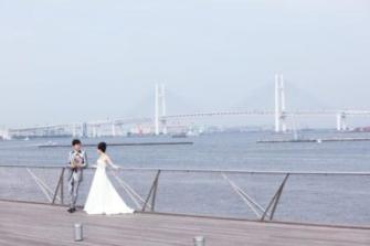 撮影を行った新郎新婦は、新婦の大好きな横浜の地でロケーション撮影をしたいというご希望をもった新潟在住のカップル。5月24日(木)の撮影当日は天候にも恵まれ、赤レンガ倉庫、みなとみらい、ベイブリッジ、マリンタワーと周遊しながら、タキシード、ウエディングドレスでプロのカメラマンがロケーション撮影をしました。NHKの同行取材があったことも「とても思い出に残る撮影になりました」と喜びの声をいただきました。