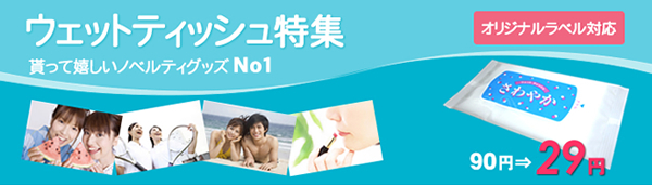 夏の定番ノベルティとして人気の高いオリジナルラベル対応のウェットティッシュを大量入荷しましたので、ご案内いたします。初めての方でも安心な、嬉しい3大特典サービス付きでご案内しています(国内ダントツ最安値)。是非ご検討ください。