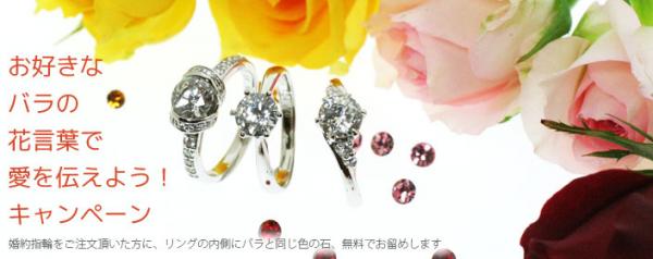 ・「バラの花言葉で愛を伝えよう!キャンペーン」にて、リングの内側への石留めサービスをご希望の方は、ご注文最後のページの”その他お問い合せ欄”にご希望の色(赤・黄色・ピンク)を必ずご記入ください。色名のご記入がない場合はお留め致しませんのでご了承ください。