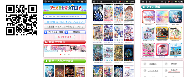 dメニュー > メニューリスト > きせかえ/待受/マチキャラ > きせかえ > アニメきせかえ王国↑