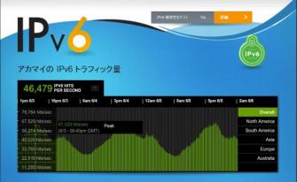 アカマイは、世界78 カ国に展開する105,000台のサーバー群によって構成されるアカマイ独自のクラウド・プラットフォーム、「Akamai Intelligent PlatformTM」から得られたIPv6ウェブトラフィックのデータを、http://www.akamai.co.jp/enja/ipv6において、リアルタイムで可視化している。