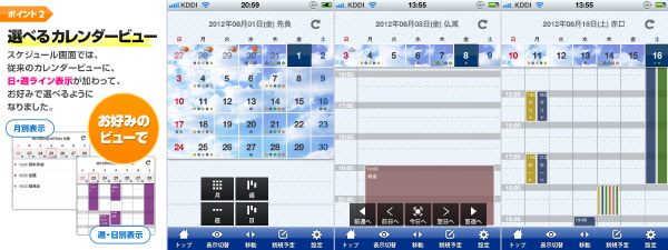 従来のリスト形式の予定表示の他、帯状のスケジュール表示を追加しました。
