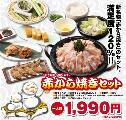 新名物「赤から焼き」を心ゆくまで楽しめる「赤から焼きセット」は1人前1,990円(2人前から承ります)。