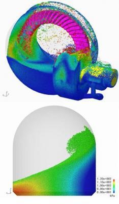 例えば、数十万cstの高粘性材料同士の混合攪拌解析や、水流によって圧力を受け回転する水車の解析を容易に行なえるようになっている。
