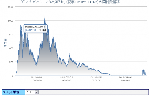 例えば、開封率を表示するグラフでは、最も開封されている時間帯が視覚的に可視化されることで、メール配信効果が分かりやすくなります。開封率を向上し、配信時間の最適化を図るうえで重要な指標を表示します。また、過去に配信された複数のメールの開封率を時系列でグラフ表示する機能も実装。これにより、定期的に配信しているメールマガジンの開封が長期的にどのような変化を示しているかが可視化されます。下降傾向にある際の打ち手として、メールコンテンツのリニューアルを検討するなど、抜本的な改善策を講じるタイミングが図りやすくなります。