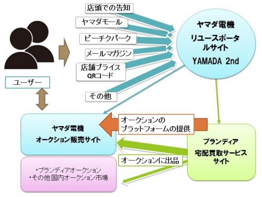 また買い取った商品は、ヤマダ電機が展開し、ブランディアがプラットフォームを手掛ける新たなオークションサイトへの出品をはじめ、国内のオークション市場で販売してまいります。