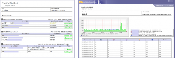 例えば「CPU使用率の高いサーバーのランキング」の作成など、運用上必要でありながら時間を要していたレポートを、内容や期間を設定することで、 ユーザー様の希望通りに作成できる新しいレポーティング機能です。もちろん、結果はすぐにPDFやCSVに出力することができます。