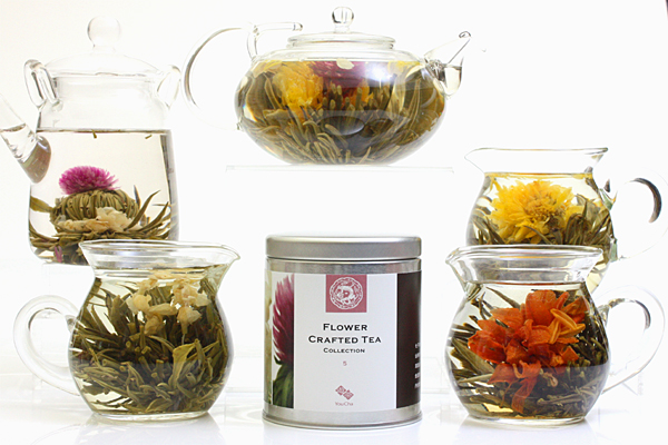 緑茶ベースの工藝茶は茶葉本来の健康促進機能を備えているのに加え、ジャスミンには去熱やリラックス効果、百合花は消炎作用、千日紅や金木犀には咳に効く働きがあるといわれ、鑑賞して、美味しく味わって、健康になる!の一石三鳥のお茶と言えそうです。