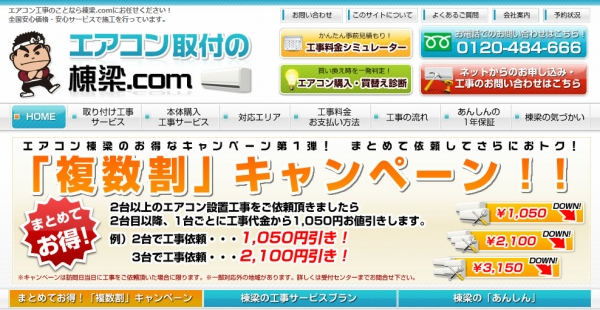 「複数割キャンペーン」と称し、2台以上の新規設置工事をご注文されるお客様への