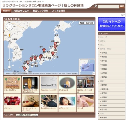 サイト閲覧者は、希望地域のリラクゼーションサロンを地図上で一括表示でき、