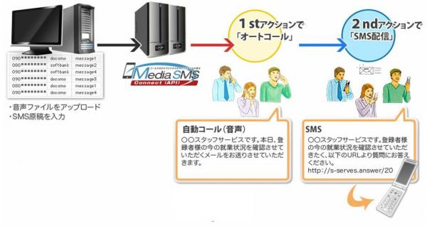 株式会社メディア4uでは、昨年の秋から、SMS(ショートメッセーシ゛)配信サービス「メディアSMS」の開発・販売を行なっています。APIという形で、SMS送信サービスを提供することで、コールセンターとの連携等で活用される事例も多くなっております。この度、当SMS送信サービスにオートコール機能を拡張実装し、「ボイス+SMS」の組み合わせで、一層の商品力の向上を目指します。サービス開始は7月上旬予定となります。