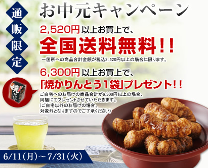 【2】6,300円以上のお買い上げで【焼かりんとう1袋】プレゼント!