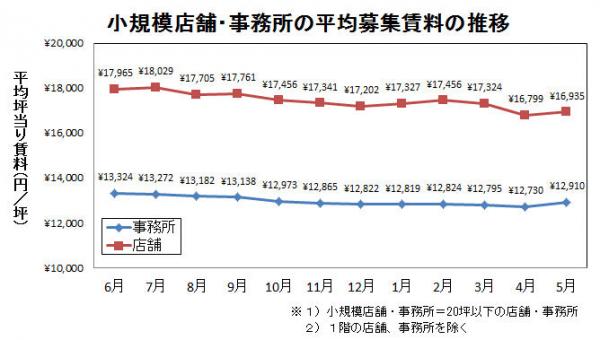 しかし、4月まで下落傾向で推移していた小規模事務所の平均募集賃料は、5月に上昇へと転じており、復調のきざしがみえます。