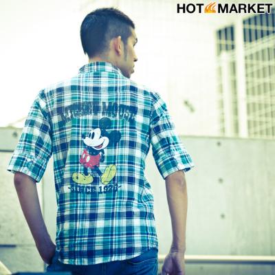 ディズニー ミッキーマウス メンズチェックシャツ