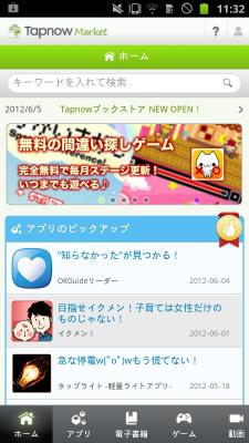 「TapnowMarket」は、2011 年夏よりサービスを開始し、アプリや電子書籍、壁紙(写真)、着メロ、