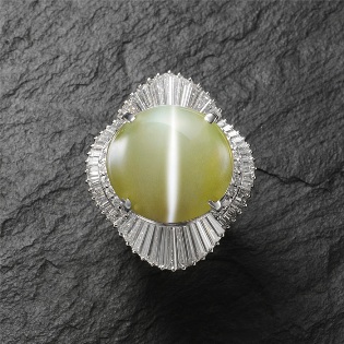 21.9カラット クリソベリルキャッツアイ&ダイヤモンドリング