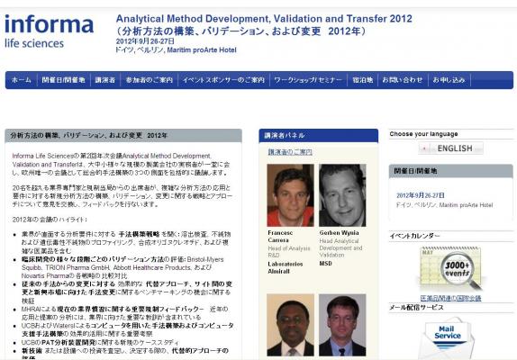 会議:「Analytical Method Development, Validation and Transfer 2012 (分析方法の構築、バリデーション、および変更 2012年)」