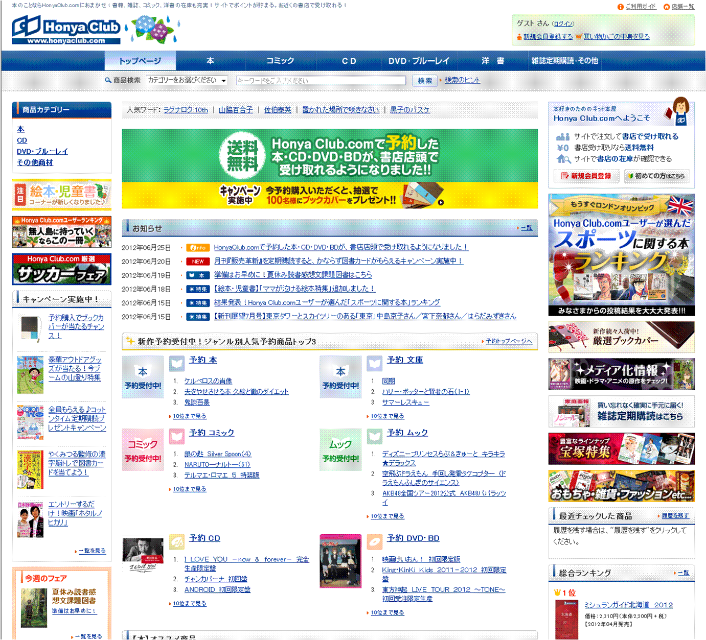 お客様と書店をつなぐネット書店「Honya Club.com(http://www.honyaclub.com/)」(運営:日本出版販売株式会社、東京都千代田区、以下日販)は、2012年6月25日より発売前の本の商品情報量を拡充し、本を探しやすく、予約しやすいサイトへとサービスを拡張いたします。