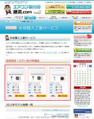 エアコン棟梁では2012年モデル販売の告知と共に、お客様に盛夏の工事ピークを