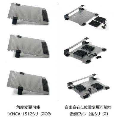 アルミ合金素材を使用し、PC接地面はメッシュ状に穴が開いています。