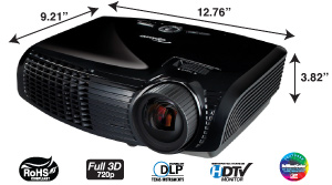 OPTOMA GT750(ゲームタイム)プロジェクターは、ハイビジョン対応(解像度 1280×800 ピクセル WXGA)、3000ANSIルーメンの3D対応のDLP Projectorです。 約80インチの大型画面を1.2mの投影距離で、約100インチの大型画面を1.5mの投影距離で実現しますので、ワンルーム4畳半サイズの部屋といった狭いスペースでも、市販のゲーム機(*)と接続し没入型のゲーム環境を楽しむ事が可能です。 スクリーンをお持ちでない方も、80インチ~100サイズの白い壁で投影できる場所さえあれば大画面でゲームを楽しむことができます。