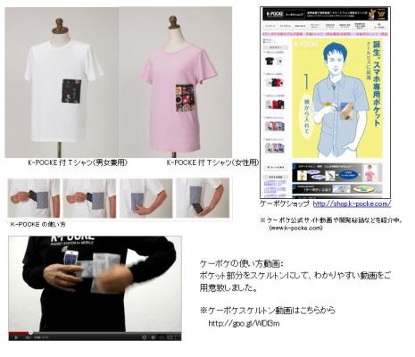 今回は、これからの夏の季節に合わせて、カジュアルなTシャツにケーポケを取り付けた商品の(2012年度版/春・夏シリーズ)を開発し、販売を開始いたました。