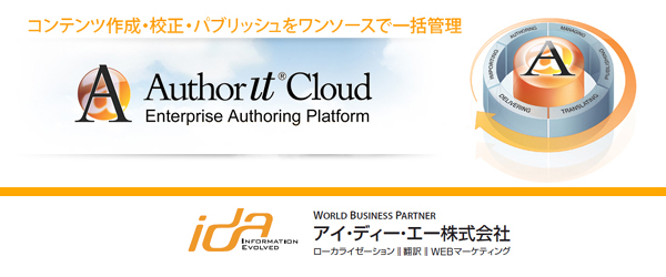 アイ・ディー・エー株式会社では、<Author-it>の販売と共に、導入に際してのコンサルティング、ユーザートレーニング、多言語翻訳、マニュアル・カタログ・WEBサイト制作などユーザーの要望に応じて総合的なサポートも提供していきます。