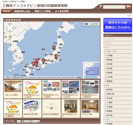 サイト閲覧者は、工務店を日本全国の希望地域ごとに地図表示することができ、