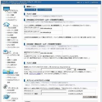 「ラクサバ」は、年間契約の場合月額250円の料金でディスク容量2GB、独自ドメイン3個、MySQLのデータベースが1つ利用できるというサービスです。その他に、ディスク容量10GB,30GB,60GBのプランも用意し、それぞれ年間契約の場合月額400円、959円、1917円で利用が可能です。