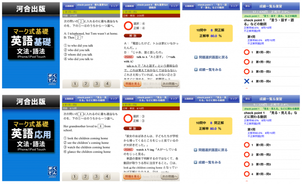 学習専門図書サイバーモールなどを運営する株式会社ブックモールジャパン(本社:埼玉県戸田市、代表取締役社長:山田俊明)は、iPhone 向け学習アプリケーションの新作として、株式会社河合出版の協力のもと本年4月に発売したiPhoneアプリケーション「河合出版マーク式基礎世界史B[正誤問題]」「河合出版マーク式基礎日本史B[正誤問題]」に続くシリーズ第2弾として「河合出版マーク式基礎英語[文法・語法-基礎]」「河合出版マーク式基礎英語[文法・語法-応用]」の2タイトルを開発し、「学参ドットコム」ブランドにて7月5日より App Store での発売を開始しました。