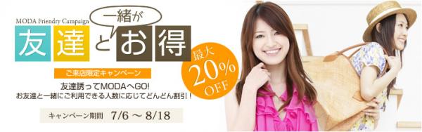 パーティードレスレンタル事業を展開する株式会社モーダ・ジャパン(本社:大阪市 代表:飯原 淳人)は7/6よりご友人と一緒に来店、ドレスのレンタルを行うと割引が適用されるお友達割引キャンペーンを実施いたします。結婚式の二次会などの利用シーンにおいてご友人をお誘いの上利用していただけるお客様に下記のような割引キャンペーンを適用させていただきます。