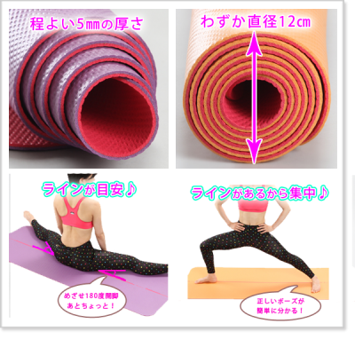 ヨガマットは、床の上でポーズをとる時カラダが床にあたる痛みを防ぐのはもちろん、感染症からも自分を守ってくれる優れものなのです。「他の人が大量に汗をかいたヨガマットに寝転んで運動するのは抵抗がある、床が冷たくカラダが冷える」という方にもオススメです。自分のヨガマットで清潔&快適にフィットネスライフを楽しみましょう。