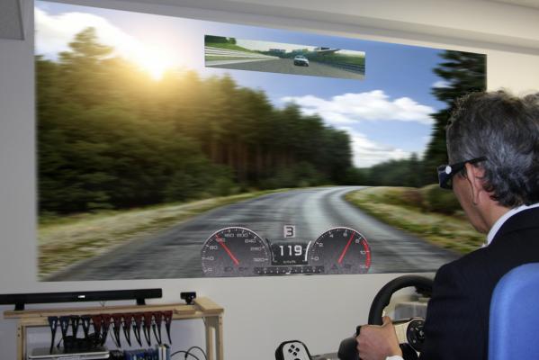 ”CyberReality 3D"、はPlayStation3(PS3)のゲームを楽しめる没入型のエンターテインメントシステムで、超短焦点の3Dプロジェクター、3Dメガネ、レーシングホイール、専用スタンド、アサルトライフル型コントローラ及びテーブルがセットとなった製品です。