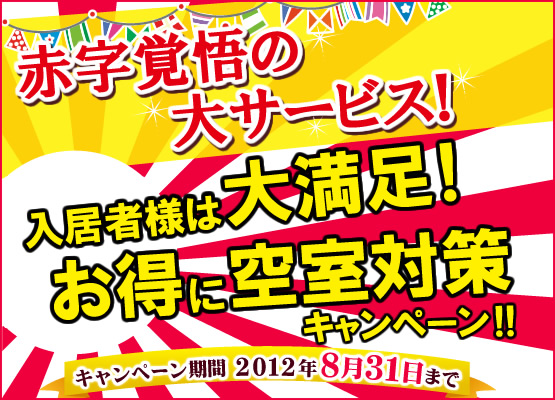 2012年8月31日(金)まで、「【赤字覚悟の大サービス!】入居者様は大満足!