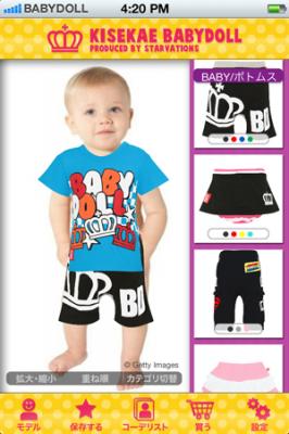株式会社コージィコーポレーション(本社:大阪市中央区、代表取締役: 高林更次)の運営するベビー服・子供服ショップSTARVATIONS(スターベイションズ)のBABYDOLL(ベビードール)が、BABYDOLL(ベビードール)やDISNEY★Collectionなどポップでかわいい洋服を、スマホで試着できるiPhoneアプリをリリースしました!