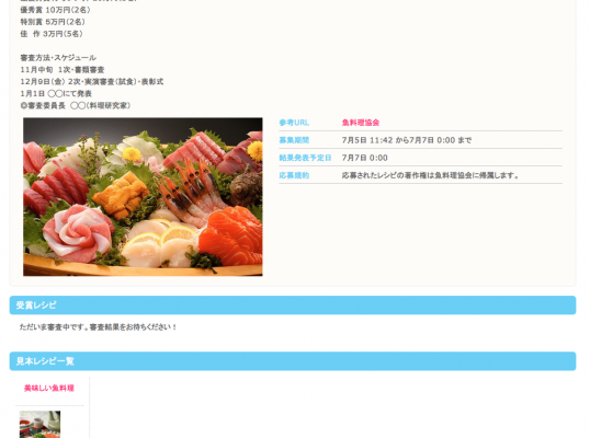 なお、レシピブッククラウドから一般利用者へのコンテスト告知等は行わないため、必要に応じて利用者に周知していただく必要があります。