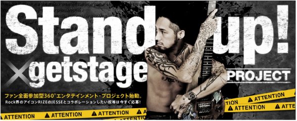 アーティストとステージのオンラインマッチングサービス「getstage」(ゲットステージ http://getstage.com)を運営する株式会社g&hは、RIZEのフロントマン、日本ロックのアイコンJESSEが書き下ろしたデモベースの11曲をアーティスト、ファンが自由にリミックス、ヴォーカルカバー出来るプロジェクト「STAND UP!」にて、本日より一般投票を開始します。