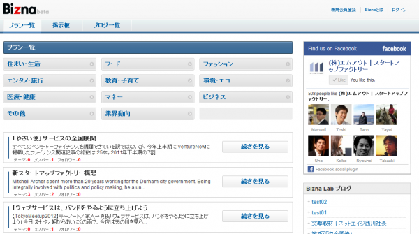 これまで『Bizna』をクローズドベータ版として運営しておりましたが、『Bizna』の認知向上のため、2012年5月22日にスタートアップ関連の独自取材記事や成功サービスの事例研究を掲載した「ブログ」を公開したことにより、参加者数が大幅に増加しました。今回は更に、新規のユーザーにプランや掲示板の内容に触れてもらうことにより、プランの投稿やユーザー同士のディスカッションがより一層促進されることを狙います。