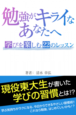 現役東大生起業家の清水章弘が教える、勉強をとことん楽しむ勉強術。「なぜ勉強しなくてはいけないの?」「この勉強の先には何があるの?」 だれもが一度は考える疑問です。実は、勉強は本当は楽しいものなんです。 勉強が嫌になったとき、勉強に疲れたときに読むと、気持ちが楽になり、意欲が湧いてくる、勉強を楽しむためのヒント集。 女流書道家、永田紗恋のユニークでほのぼのとする書と言葉ともに、清水章弘が中高生に贈る熱いメッセージ。