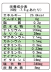 原材料 ブドウ糖、麦芽糖、食塩、グリセリンエステル、クエン酸、塩化カリウム、 香料、ビタミンC、乳酸カルシウム、硫酸マグネシウム、甘味料(ステビア、スクラロース)、重炭酸ナトリウム、ナイアシン、ビタミンB6、ビタミンB1、ビタミンB2