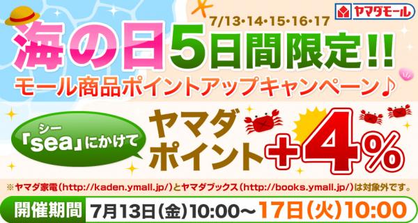 をコンセプトにヤマダ電機が運営する「ヤマダモール」にて、7月13日(金)10時~17日(火)10時の期間にて「海の日 モール商品(※1)ポイントアップキャンペーン」を開催しております。