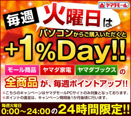 をコンセプトにヤマダ電機が運営する「ヤマダモール」にて、本日7月17日(火)より、毎週火曜日にパソコンからご購入いただくとポイントがアップする「+1%Day」キャンペーンを開始いたしました。
