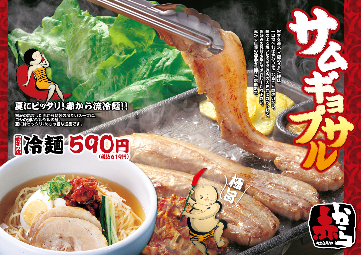 コラボレーション!「サムギョプサル」と「赤から流 冷麺」、2つの新メニューが