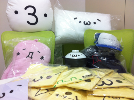 また、リリース記念キャンペーンとして「しょぼ~ん土鍋」「ハァハァ抱き枕」「しょぼーん(´・ω・`)土鍋」「(*´д`*)ハァハァ抱き枕」などの顔文字グッズを7月17日~末日までの平日毎日プレゼントするキャンペーンを開始いたしました。本アプリをダウンロードし、twitter公式アカウントをフォローするなどしてキャンペーンに参加することができます。