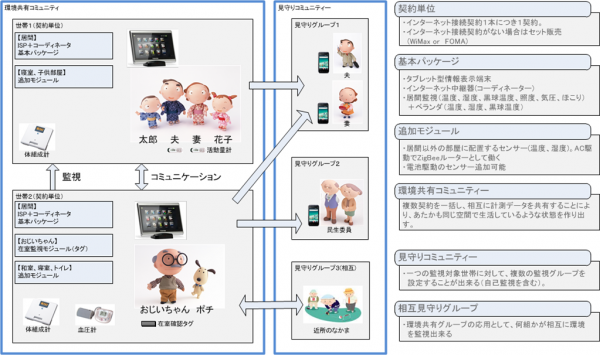 本実証実験は、屋内外の温度または湿度差を捕捉し情報提供を行うだけの方法では、高齢者の熱中症対策を効果的に進めるのは難しいことから、新たに「持続した見守りコミュニティ」という視点を加えたサービスとして一体深化させ、その実効性を検証するものです。