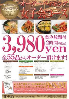 「女子会コース」は、4名様以上でご来店の女性のお客様限定でご提供するプランで、利用には事前予約が必要です。鍋料理やサムギョプサルをはじめとした、「韓国厨房チョアチョア」のメニュー全55品が食べ放題で、飲み放題もついた大変お得なプランになっています。