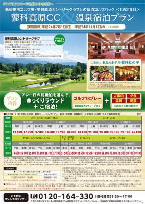■料 金:1泊2食付1ラウンド(セルフ)/1名様料金(税・サ込、入湯税・ゴルフ場利用税別)=