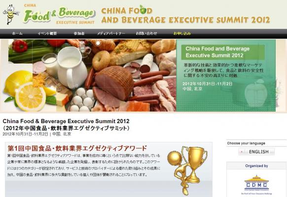 会議:「China Food & Beverage Executive Summit 2012 (2012年中国食品・飲料業界エグゼクティブサミット)」