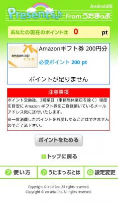 本Webは登録料、利用料は一切必要がございません。Webに掲載されているアプリ等をダウンロードするとポイントが貰えて、そのポイントを集めることによりiPhone版はiTunes内の好きな楽曲、Android版はAmazonギフト券に交換出来るサービスです。既に累計165万ダウンロードされているユーザーへもっと楽しくアプリを利用して欲しいとの思いから、生まれたサービスです。